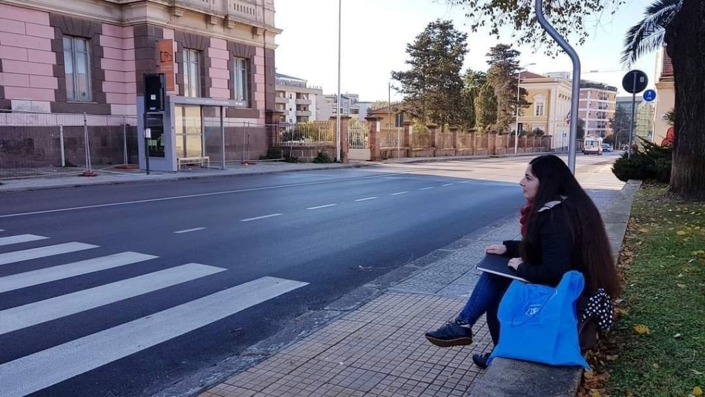 “Lei è Michela, siede ogni giorno davanti alla scuola in cui non le è più permesso di entrare senza il codice della schedatura digitale di controllo sanitario. Non strilla, non espone cartelli, non danza, non critica, non offende, non giudica nessuno. Se ne sta seduta durante tutto l’orario delle lezioni davanti all’edificio scolastico, rispettando al 100% la legge che la discrimina e la esclude dal suo diritto costituzionale al suo lavoro di insegnante.