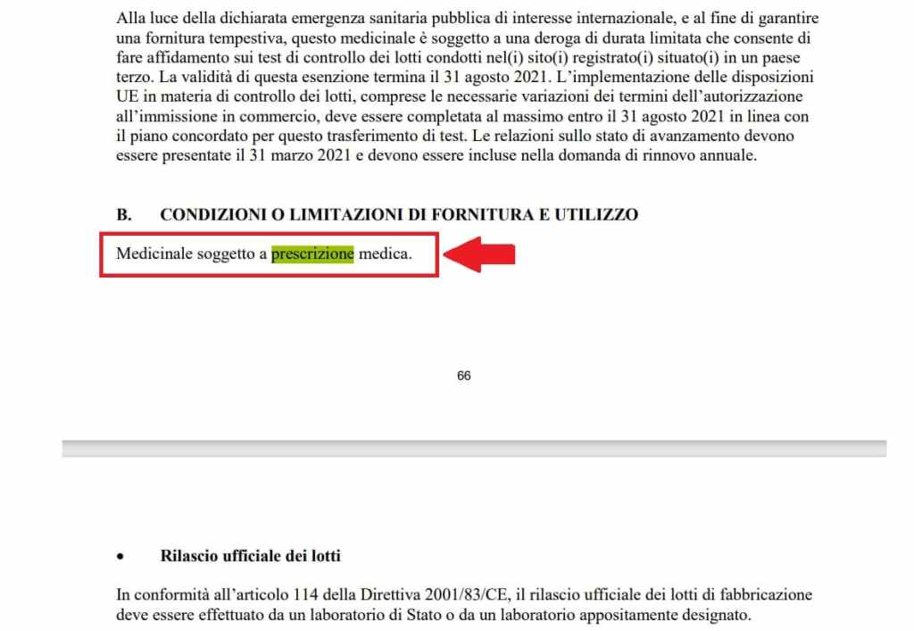 Pubblicato il 14.12 per quanto attiene all’obbligo di prescrizione del vaccino, da parte del proprio medico curante, e di altri aspetti molto interessanti , in questo caso , sul vaccino Comirnaty . (vedi estratto qui sotto)