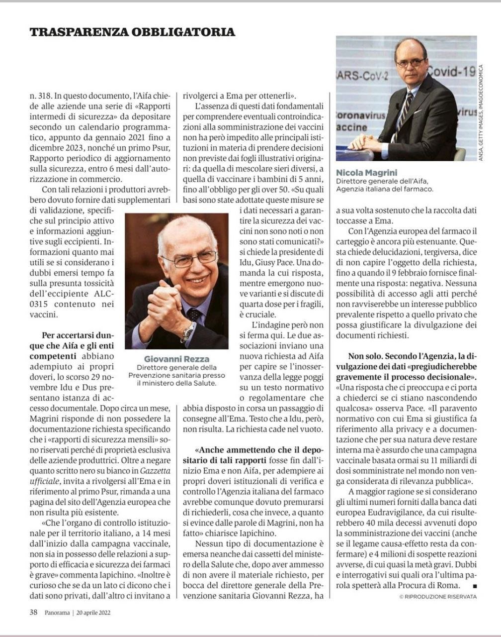 Per EMA, interpellata in merito ai dati sulla sicurezza che Aifa non aveva, rivelare tali dati “pregiudicherebbe gravemente il processo decisionale”. Come dire: i dati li abbiamo, ma se li pubblichiamo non sarà possibile concedere un’autorizzazione?