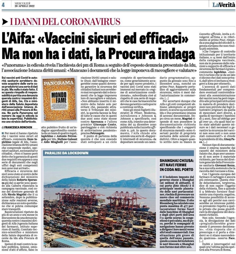 Per mesi, le autorità sanitarie hanno ripetuto che i vaccini erano sicuri. Una tale affermazione, trattandosi della salute dei cittadini, presuppone delle certezze. Se Aifa garantisce, quindi, i cittadini possono fidarsi. E invece i dati sulla sicurezza non sono mai stati acquisiti né valutati dall’Agenzia, ma lo stesso si è detto che “i vaccini sono sicuri”.