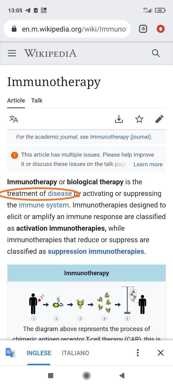 Cosa sia una IMMUNOTERAPIA ce lo spiega bene l’ISS (Ops!!): È un TIPO DI CURA che si basa sulla stimolazione del sistema immunitario.