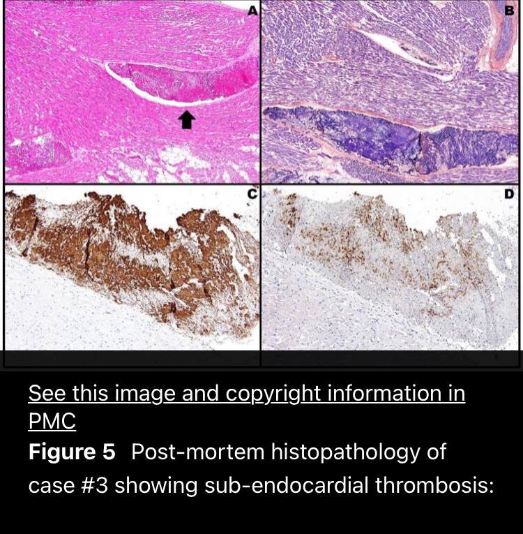Qui scrivono medici ricercatori dell’università di Modena. Dei tre pazienti deceduti per trombosi, due avevano ricevuto il “vaccino” due settimane e mezzo prima, uno 6 mesi prima. Uno era stato inoculato pur avendo già avuto la COVID-19.
