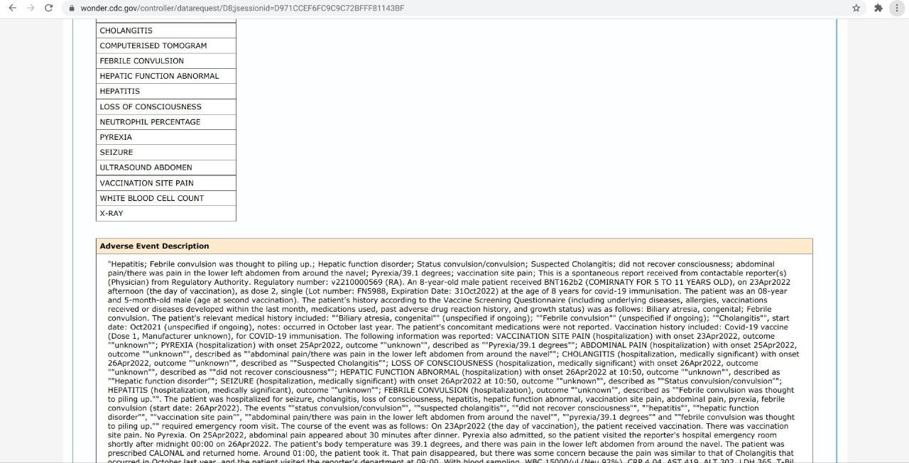 “Disturbo della funzionalità epatica; Stato convulsivo; Sospetta colangite; Non ha ripreso conoscenza; Dolore addominale intorno all’ombelico.”