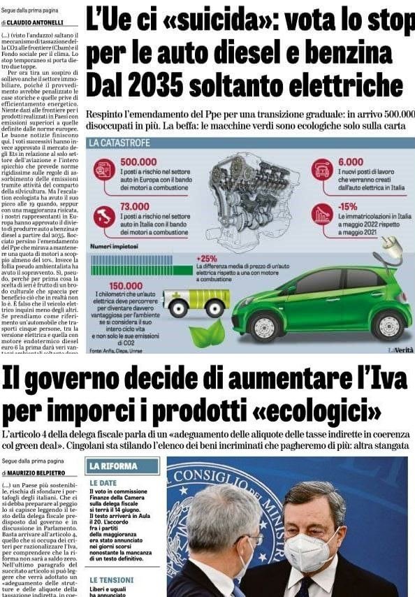 Insomma, con la scusa della transazione verde, ci stanno facendo pagare di tasca nostra la conversione all’elettrico dell’industria automobilistica franco-tedesca.