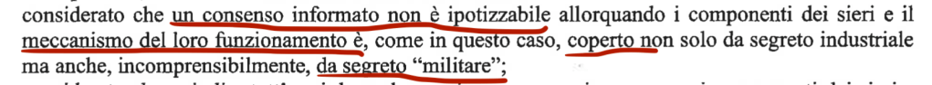 Viene data evidenza anche alla “inspiegabile” segretezza militare attorno ai sieri.