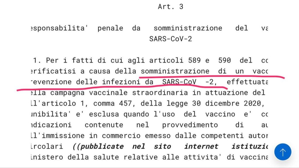 Art. 3 Responsabilita’ penale da somministrazione del vaccino anti SARS-CoV-2 1.