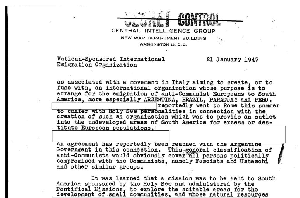 Doc CIA su Organizzazione per l’emigrazione internazionale sponsorizzata dal Vaticano SECRET CONTROL 1947