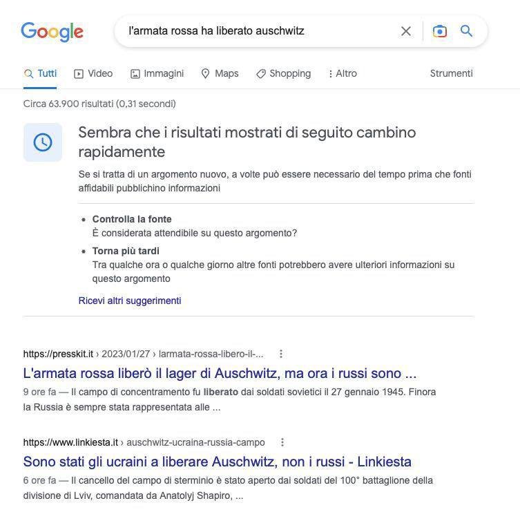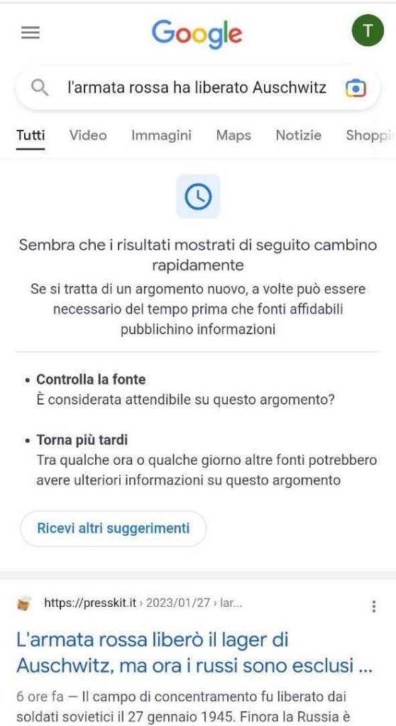 Provate a digitare su GOOGLE “L’armata rossa ha liberato Auschwitz” oppure “Chi ha liberato Auschwitz”.