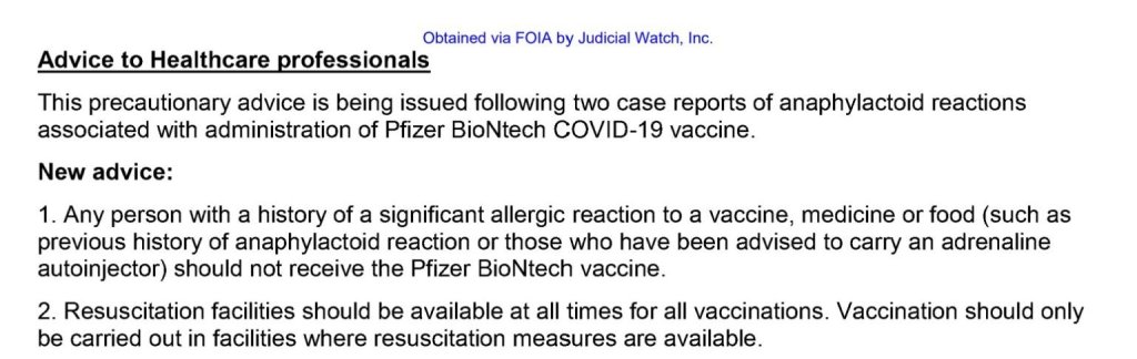Jonathan Mogford, un ricercatore medico del Regno Unito, ha inviato un’e-mail ai massimi funzionari sanitari dell’Health & Human Services (HHS) e della FDA nel dicembre 2020 esprimendo preoccupazione per i pazienti con una storia di reazioni allergiche che hanno ricevuto i vaccini Covid