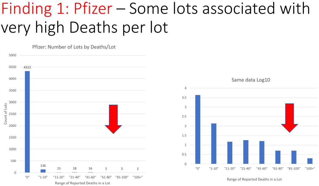 All’epoca, come si può vedere dal grafico sopra riportato, solo il 4% dei lotti di vaccino Pfizer Covid-19 prodotti era responsabile di ogni singolo decesso segnalato al CDC come dovuto alla vaccinazione Pfizer Covid-19.