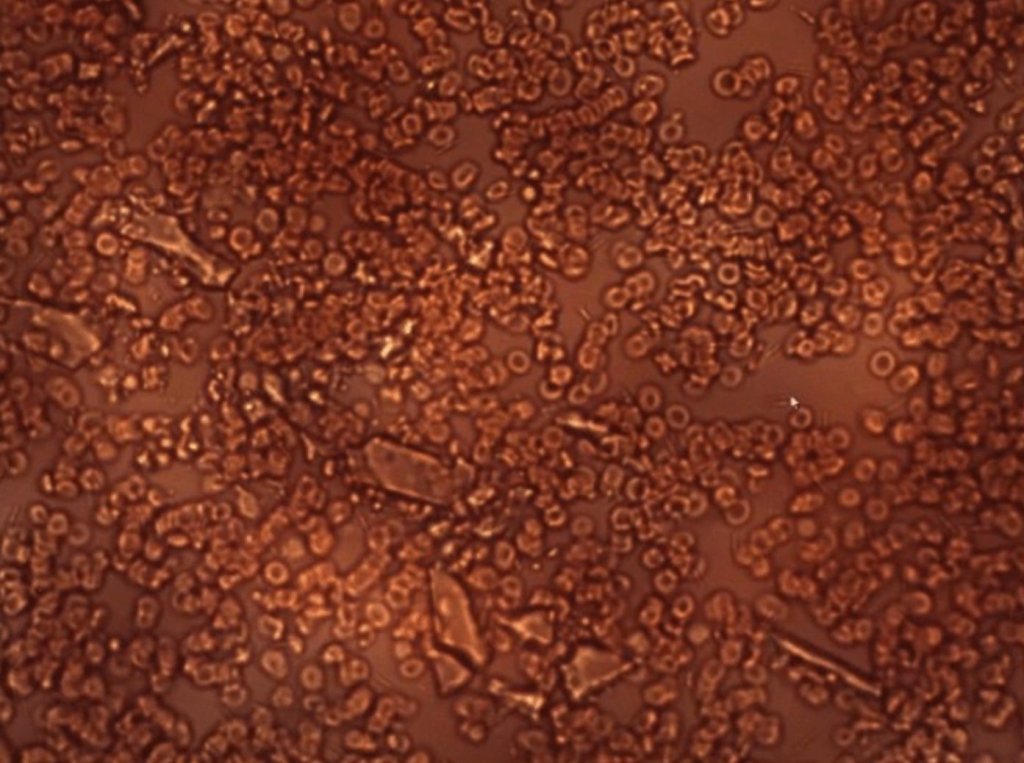 Di seguito è riportata un’immagine dei tipici globuli rossi sani visti al microscopio, come dovrebbe apparire il sangue. Non ci sono coagulazioni o oggetti estranei.