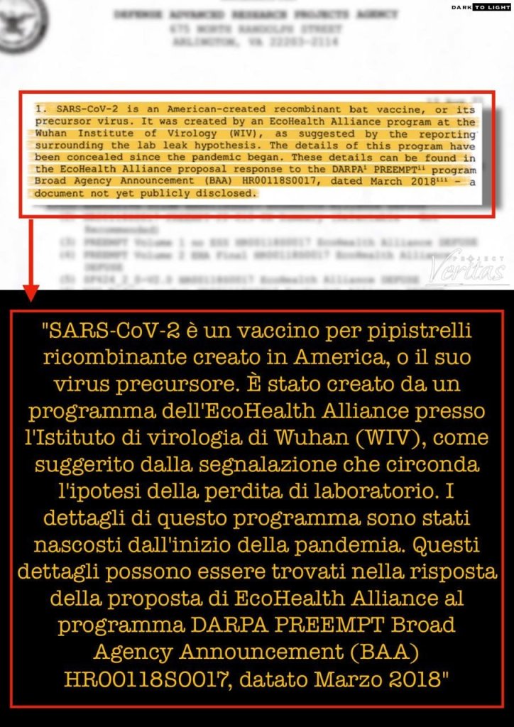 🔴 DOCUMENTI MILITARI DARPA (UN AGENZIA SOTTO IL DIPARTIMENTO DELLA DIFESA) ESPOSTI DA PROJECT VERITAS RIVELANO LE PRIME CONVINZIONI CHE SARS-COV-2 SIA STATO PROGETTATO.