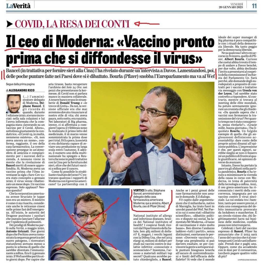 Come se non bastasse il CEO di Moderna, Bancel, ammette che il siero Genico ASSASSINO era pianificato ben prima dell’arrivo della Pseudo-Pandemia
