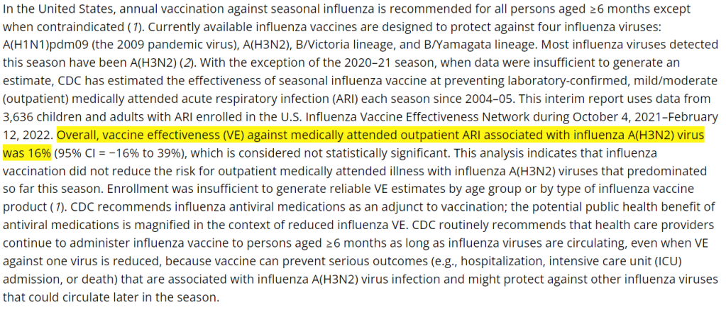 E, nel marzo 2022, il CDC ha stimato che l’influenza stagionale avesse un’efficacia minima, pari solo al 16% .