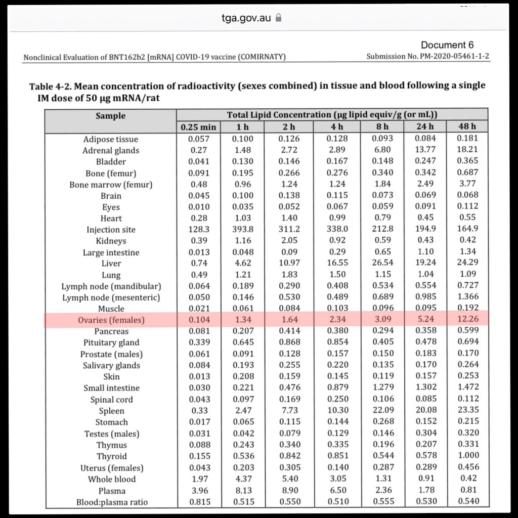 Secondo un rapporto dell’agenzia governativa australiana TGA , il danno ovarico si verifica probabilmente perché le nanoparticelle lipidiche che incapsulano l’mRNA hanno una particolare preferenza per le ovaie: