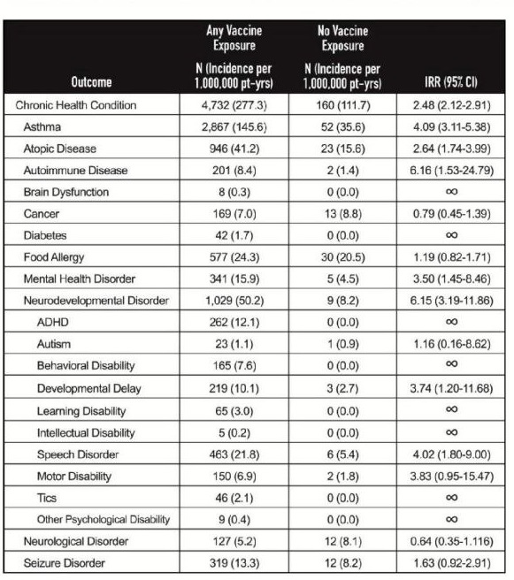 l più grande studio di coorte di bambini vaccinati vs. non vaccinati nella storia degli Stati Uniti (n=18.468) ha monitorato i bambini per 10 anni e ha rivelato un aumento impressionante delle malattie croniche tra i vaccinati.