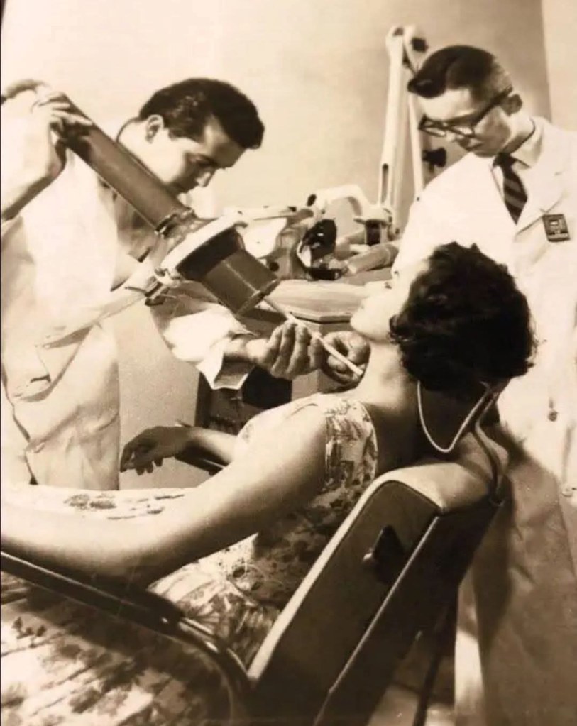 Neanche un grembiule di piombo in vista. Perché negli anni ’60, la radiazione non era temuta — era celebrata. Non era ignoranza, era il culmine della medicina moderna.
