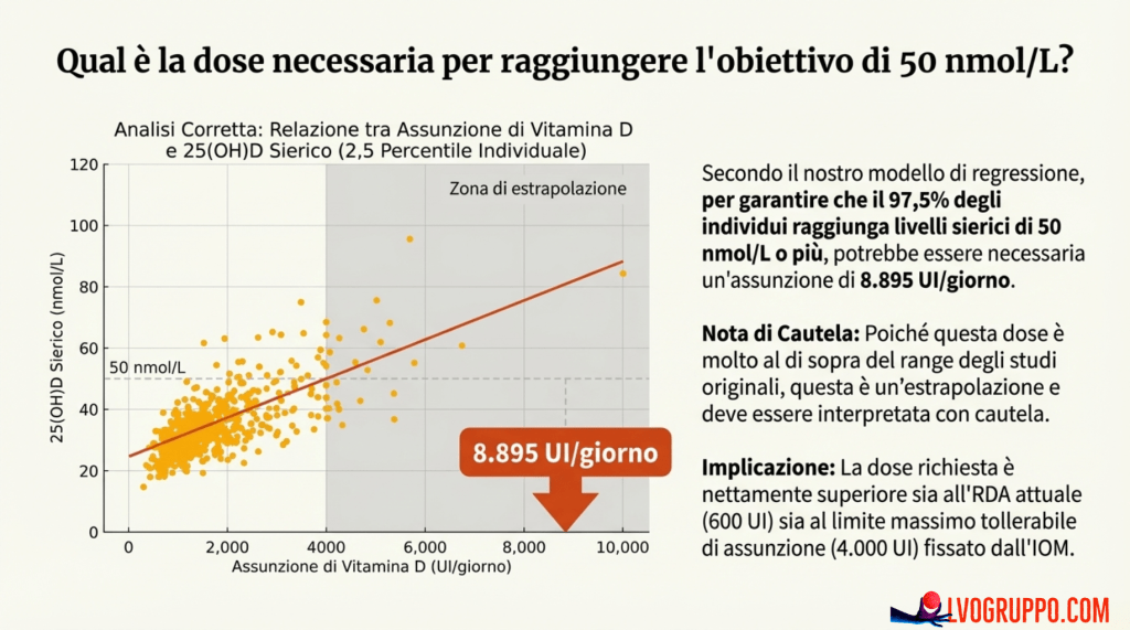 Tuttavia, la soluzione proposta dalla rianalisi—8.895 UI al giorno—presentava il suo own dilemma. Questa cifra, pur indicando l’inadeguatezza della RDA attuale, era un’estrapolazione che andava ben oltre le dosi testate negli studi originali.