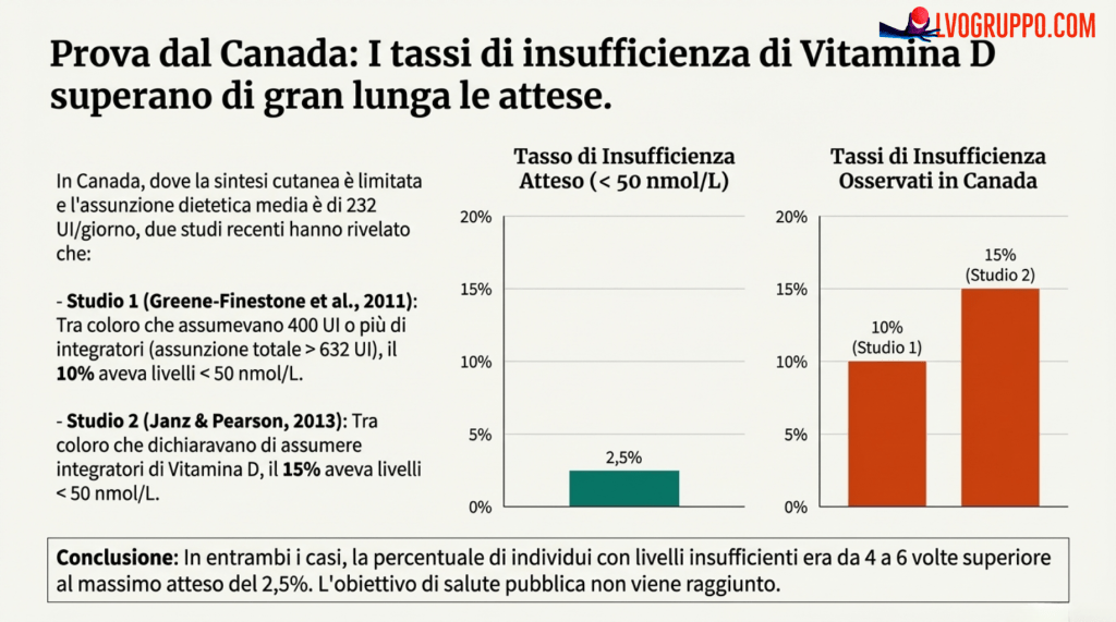 La conferma che la RDA era insufficiente arrivò non dai laboratori, ma dal mondo reale. In Canada, paese che rispecchiava le condizioni degli studi originali (minima esposizione solare invernale), i dati parlavano chiaro.