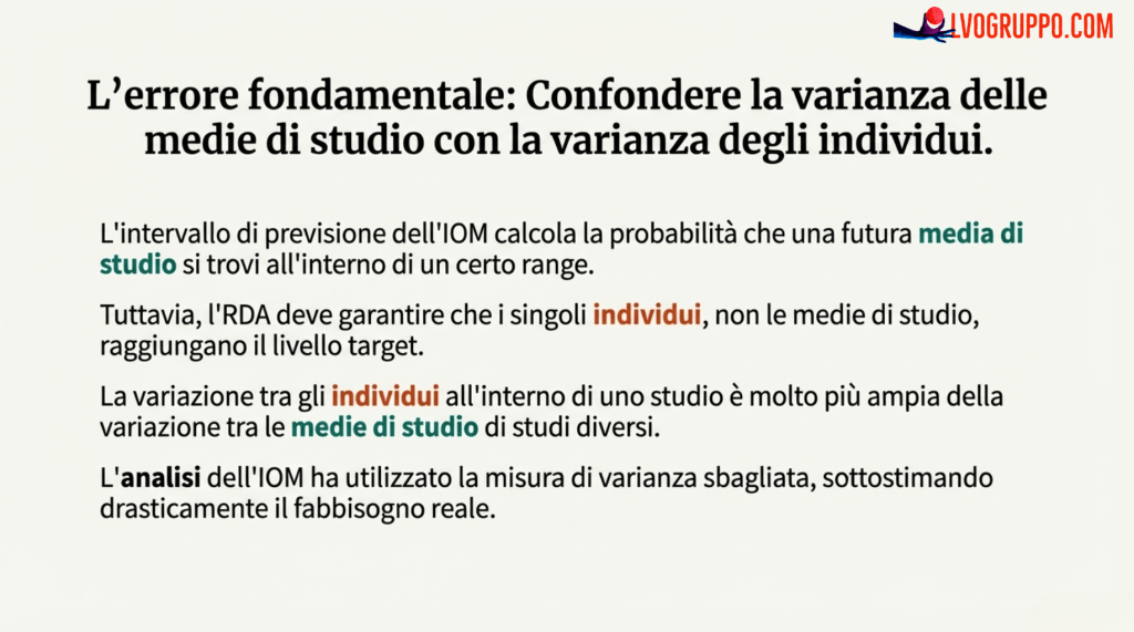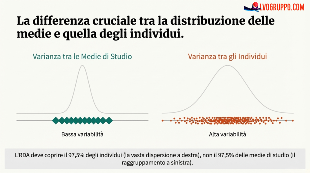 L’Institute of Medicine aveva creato una RDA progettata per proteggere il 97,5% delle persone. Invece, a causa di un errore statistico, aveva creato una raccomandazione che falliva sistematicamente nell’obiettivo per una porzione significativa della popolazione.