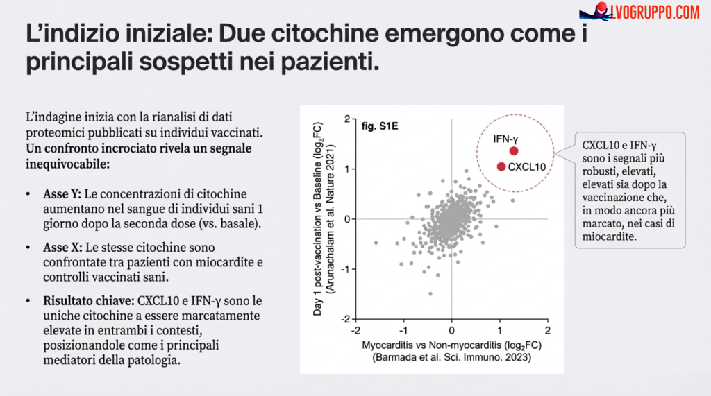 L’indagine scientifica è partita da un’intuizione brillante: riesaminare e confrontare dati già esistenti provenienti da due studi umani completamente indipendenti. Il primo dataset mostrava quali citochine (proteine-segnale del sistema immunitario) aumentano normalmente nel sangue di individui sani dopo la vaccinazione. Il secondo, invece, confrontava i livelli di citochine tra pazienti che avevano sviluppato miocardite e persone vaccinate che non avevano avuto problemi.