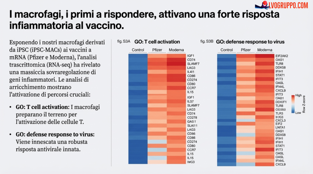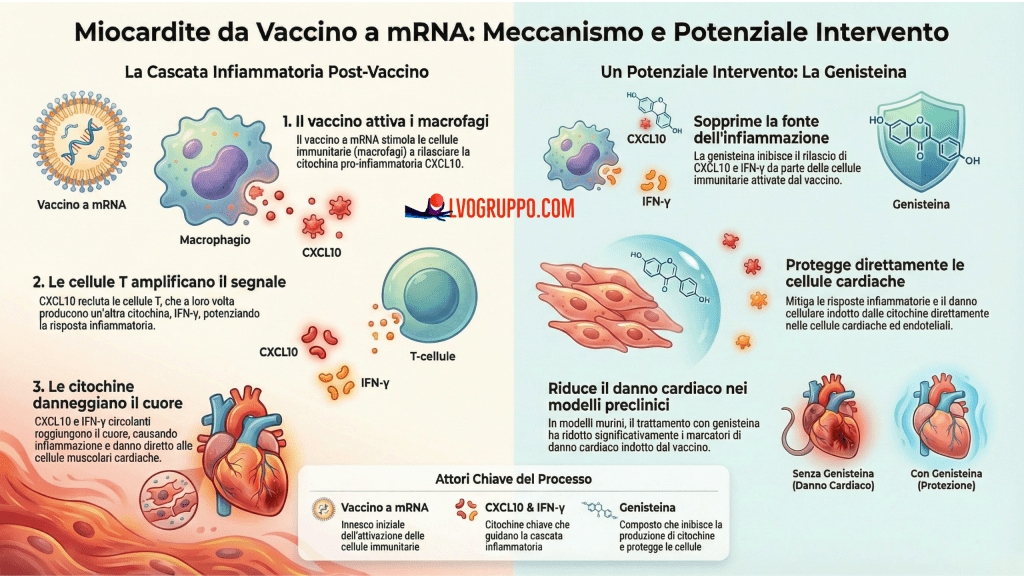 In sintesi, la miocardite non è causata dal vaccino che “attacca” il cuore, ma è una conseguenza indiretta di questa specifica interazione a più stadi tra macrofagi e linfociti T, che genera un eccesso di segnali infiammatori circolanti.
