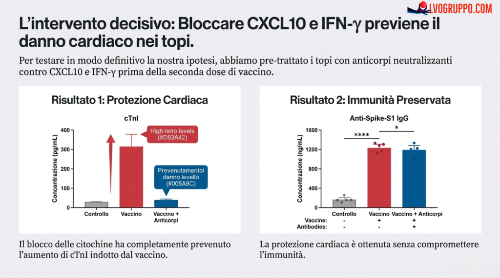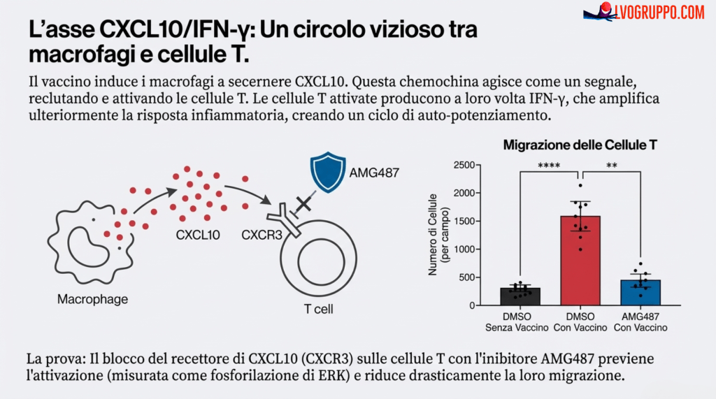 Mettendo insieme questi due pezzi del puzzle, è emerso un dato inequivocabile. Tra decine di molecole analizzate, solo due si distinguevano nettamente in entrambi gli scenari: la CXCL10 e l’interferone-gamma (IFN-γ). Queste due citochine non solo fanno parte della normale risposta immunitaria al vaccino, ma i loro livelli erano sproporzionatamente più alti proprio negli individui che avevano sviluppato miocardite.