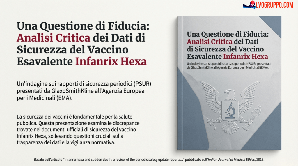 Questo articolo ricostruisce la vicenda attraverso lo studio indipendente pubblicato dal dottor Jacob Puliyel e dalla dottoressa C. Sathyamala, analizzando i Rapporti Periodici di Aggiornamento sulla Sicurezza (PSUR) 15, 16 e 19 di Infanrix hexa. Lo scopo non è alimentare allarmismi, ma illuminare zone d’ombra che troppo a lungo sono rimaste precluse al dibattito pubblico, e chiedere conto alle autorità regolatorie della diligenza esercitata nella valutazione della sicurezza di un prodotto somministrato a milioni di bambini.