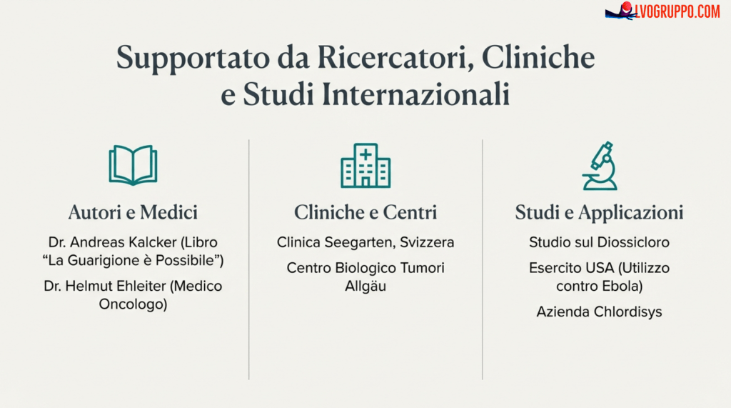 Come riportato dalla Seegarten Klinik in Svizzera, che utilizza da anni una forma brevettata di biossido di cloro chiamata “dioxychlor”: