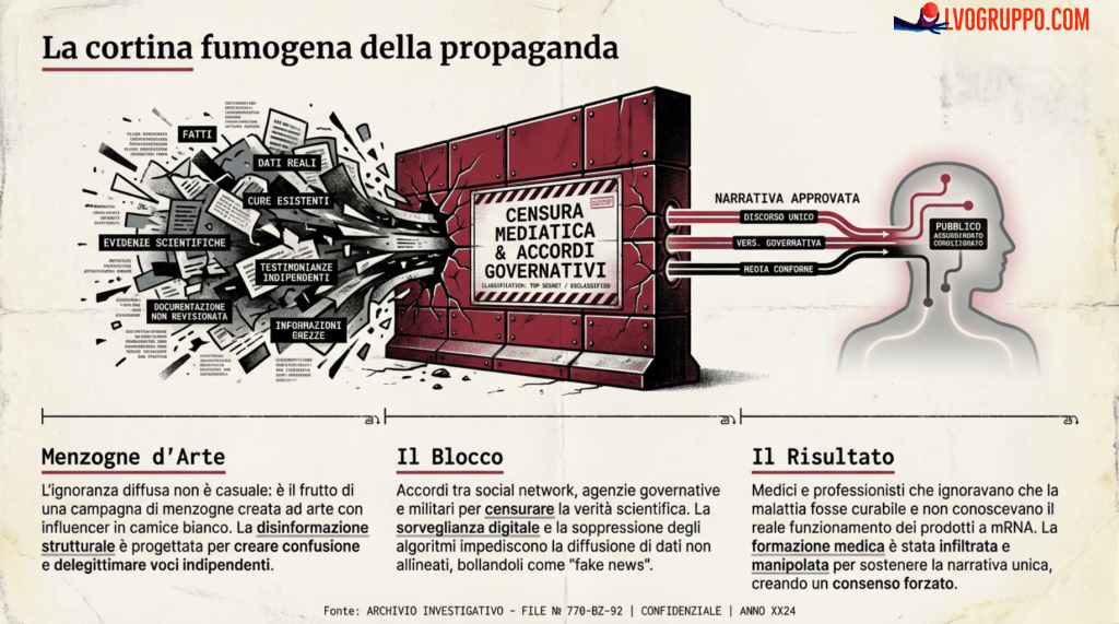 2. Mancanza di Consenso Informato: Ai “soldati” (i cittadini) è stata venduta la menzogna della sicurezza assoluta. Nessuno ha informato chi correva agli hub vaccinali dei rischi reali di invalidità permanente o morte. Il generale che manda i soldati all’assalto almeno dice loro la verità sulla pericolosità della missione.