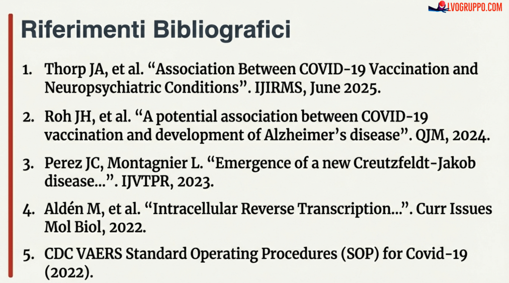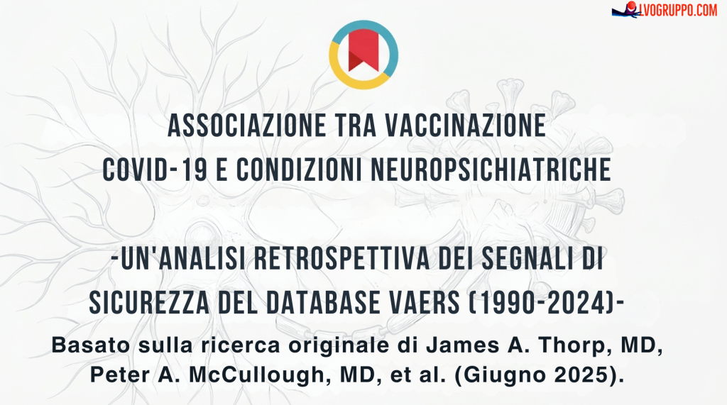 Citazione dagli autori: “Ci troviamo di fronte a segnali di sicurezza senza precedenti nel database VAERS… il drammatico aumento dei disturbi psichiatrici, inclusi suicidio e omicidio, negli ultimi quattro anni è multifattoriale, ma le vaccinazioni COVID-19 hanno probabilmente fornito un contributo significativo.” (Thorp et al., 2025)
