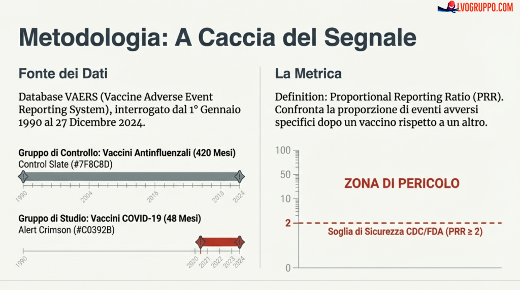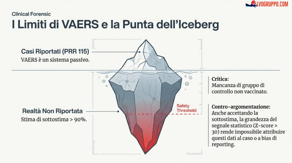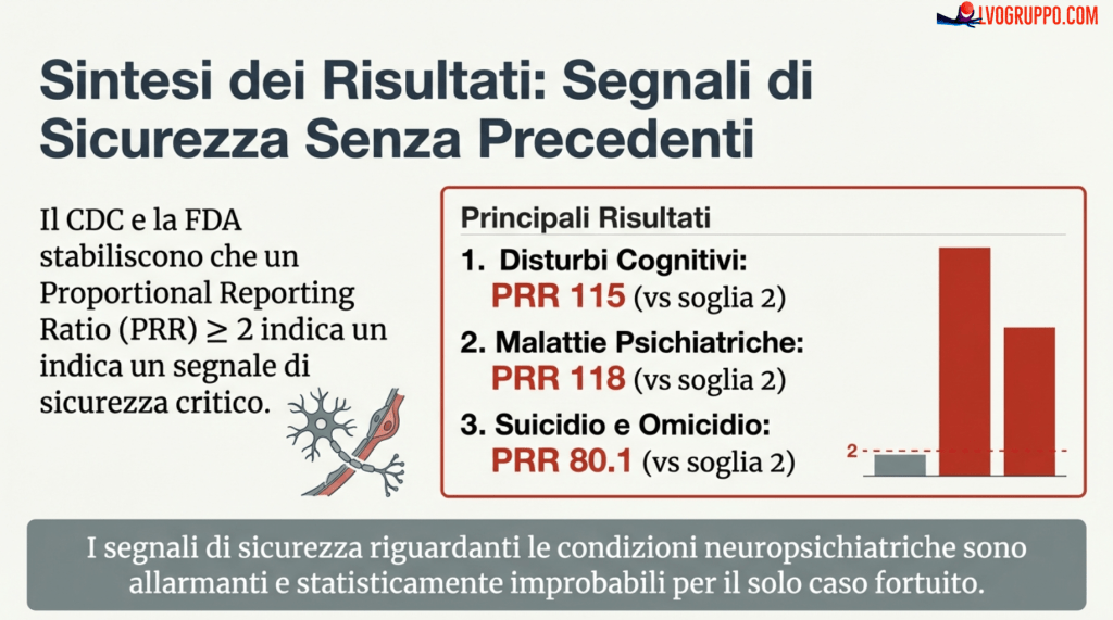 In termini pratici: quando il CDC/FDA stabilisce che un PRR di 2 è un “campanello d’allarme”, trovare valori di 100, 300 o 3000 significa che il segnale non è un campanello, ma una sirena assordante.