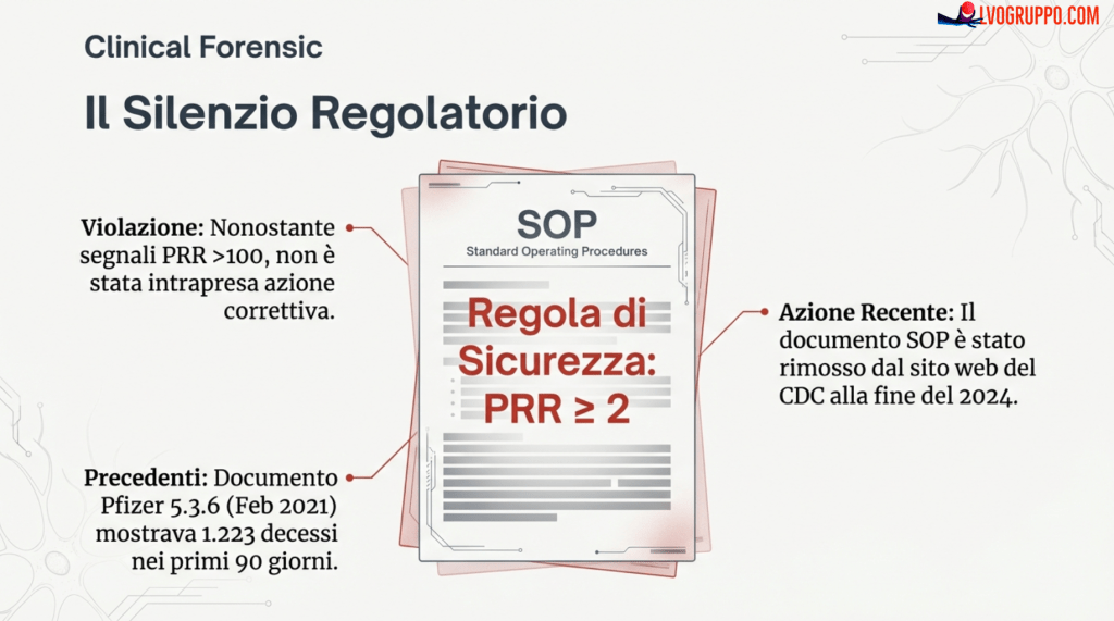 - Soglia di sicurezza CDC/FDA: PRR ≥ 2 = segnale critico che richiede indagine immediata