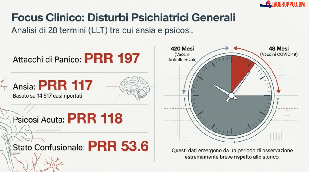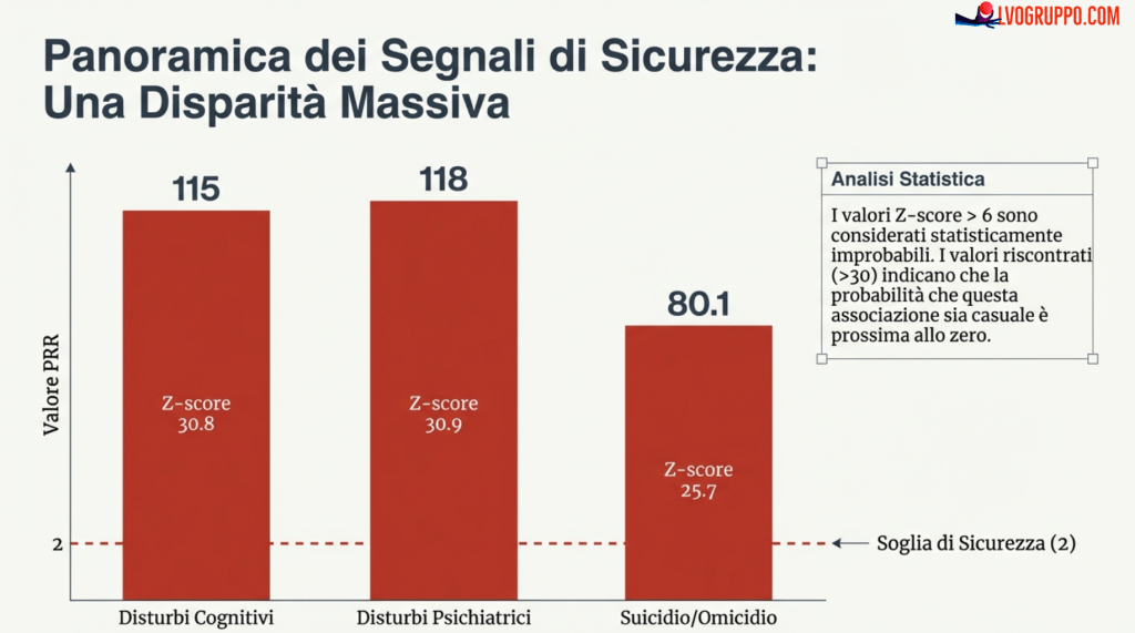 L’analisi di 47 termini clinici specifici (Lower-Level Terms nella codifica MedDRA) legati alle disfunzioni cognitive ha rivelato una disparità di segnalazione senza precedenti.