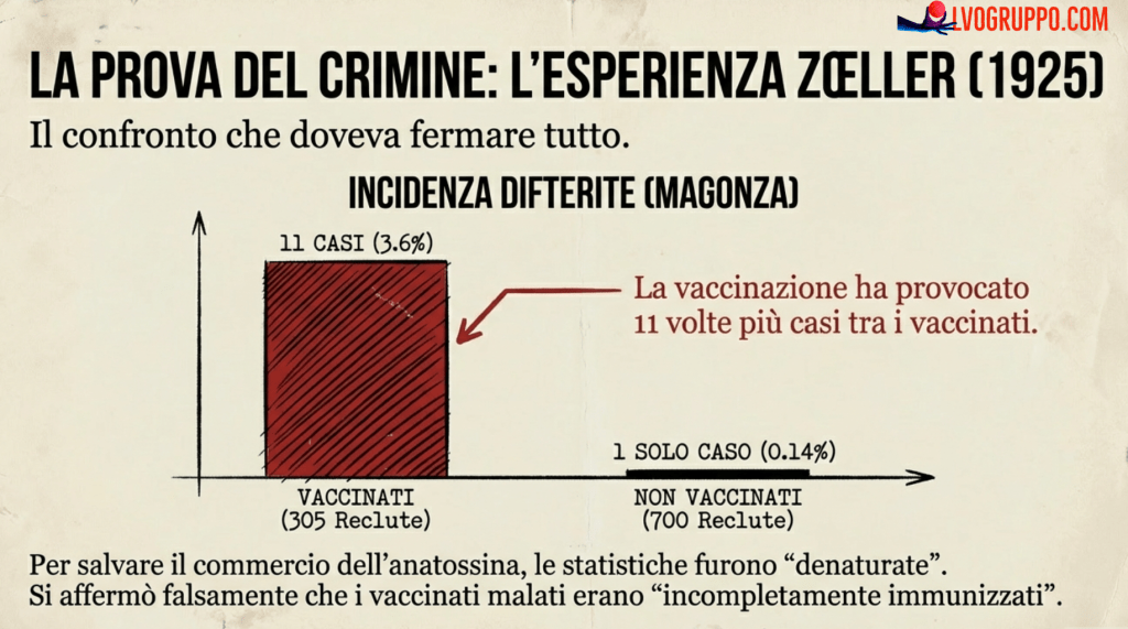 Il cuore dell’argomentazione di Tissot si concentra su un episodio avvenuto nel 1925, quasi vent’anni prima della pubblicazione del pamphlet. L’esperimento condotto dal medico militare Zœller a Magonza, nell’esercito del Reno, viene presentato come prova inconfutabile della pericolosità del vaccino antidifterico.