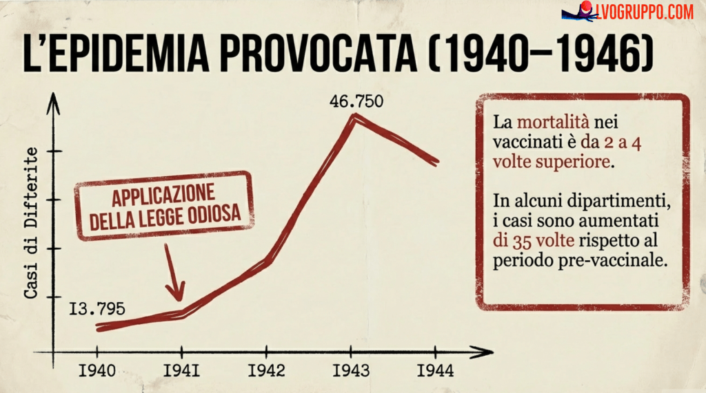 L’aumento drammatico dei casi di difterite durante gli anni 1940-1945 è un dato storicamente verificabile. Tuttavia, l’interpretazione causale proposta da Tissot (il vaccino come causa dell’epidemia) si scontra con una considerazione: questi anni coincidono esattamente con il periodo di maggiore devastazione sociale e sanitaria della Francia moderna. Attribuire l’impennata epidemiologica esclusivamente al vaccino, ignorando il collasso delle condizioni di vita, appare metodologicamente discutibile.