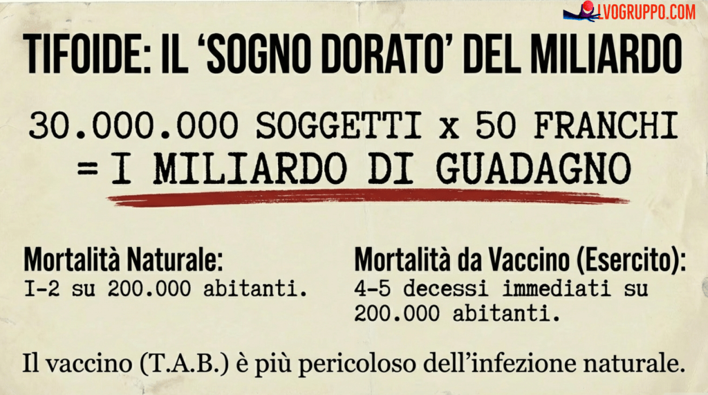 “I pericolosi vaccini tifico e B.C.G. vi attendono. Agite.”
