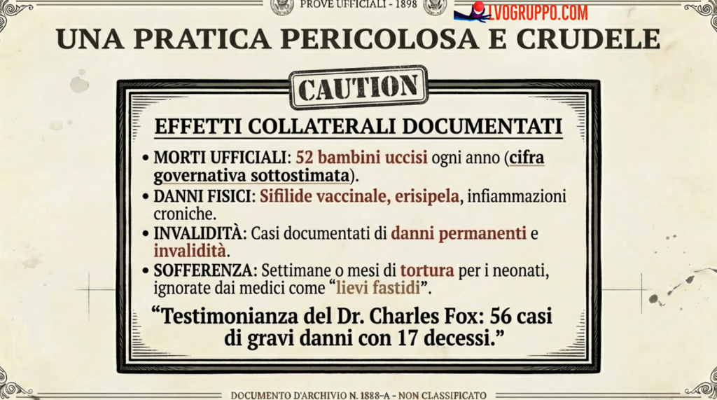 La violenza di questa imposizione era aggravata dal fatto che, secondo l’analisi di Wallace, non solo la vaccinazione non offriva alcuna protezione, ma aumentava attivamente la vulnerabilità alla malattia e causava danni diffusi e spesso fatali.