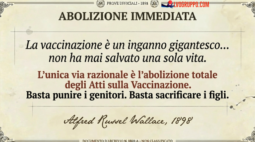 “Sostengo”, scrisse Wallace, “che tutte le dichiarazioni ufficiali riguardanti la Vaccinazione sono inaffidabili.”