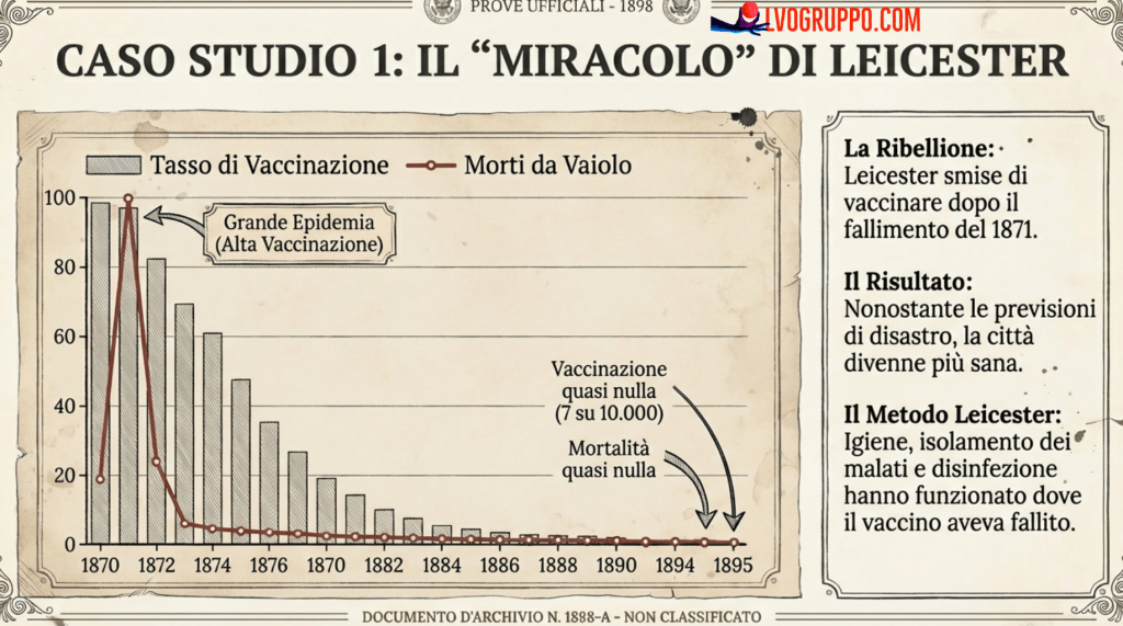 Il secondo “grande esperimento” di Wallace fu ancora più drammatico. La città di Leicester, dopo aver sofferto un’epidemia devastante nel 1871-72 nonostante alti tassi di vaccinazione, si ribellò. La popolazione respinse massicciamente la vaccinazione obbligatoria, riducendo il tasso di vaccinazione da quasi totale nel 1854-1870 a praticamente zero nel 1890.