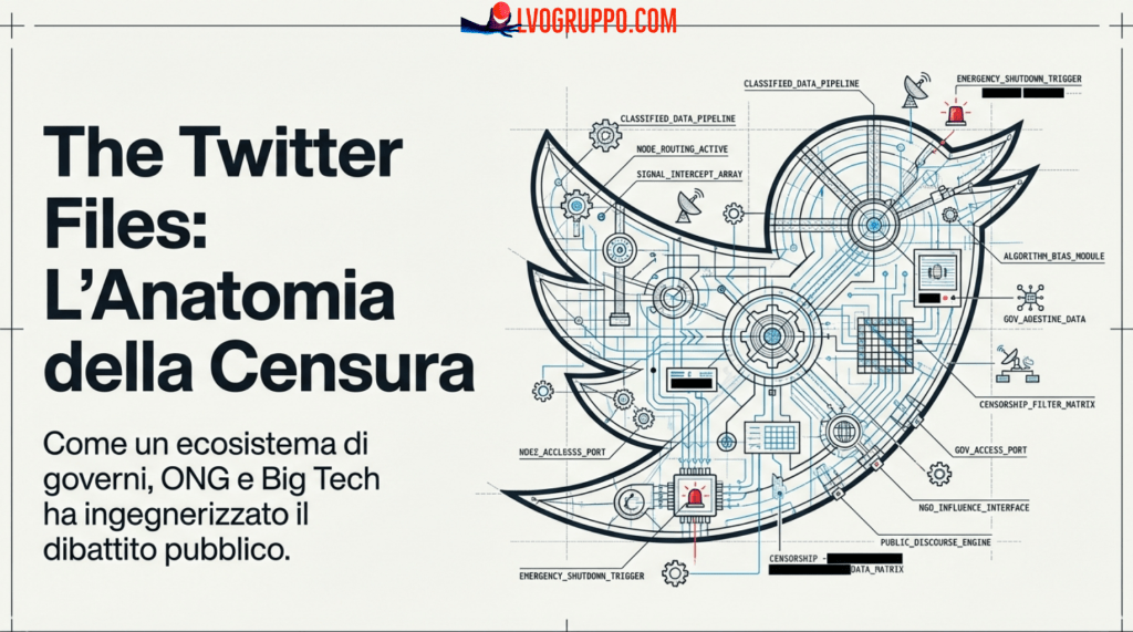 Nel 2006, Jack Dorsey e i suoi collaboratori lanciarono Twitter con una missione audace e apparentemente rivoluzionaria: dare a ogni essere umano il potere di condividere idee e informazioni istantaneamente, senza barriere, abbattendo ogni frontiera nella comunicazione globale. Quella che sarebbe dovuta diventare l’agorà digitale del ventunesimo secolo, lo spazio pubblico dove il dialogo democratizzato avrebbe potuto sfidare i monopoli dell’informazione tradizionale, ha subito nei suoi quindici anni di vita una trasformazione che rasenta l’assurdo distopico. I documenti interni rivelati attraverso i cosiddetti “Twitter Files” non sono semplicemente la cronaca di errori gestionali o di scelte editoriali discutibili: sono la certificazione documentata di una metamorfosi radicale, quella di un organismo nato per la libertà che è diventato un apparato di controllo, sorveglianza e manipolazione del discorso pubblico al servizio dello Stato federale e delle sue agenzie di intelligence.