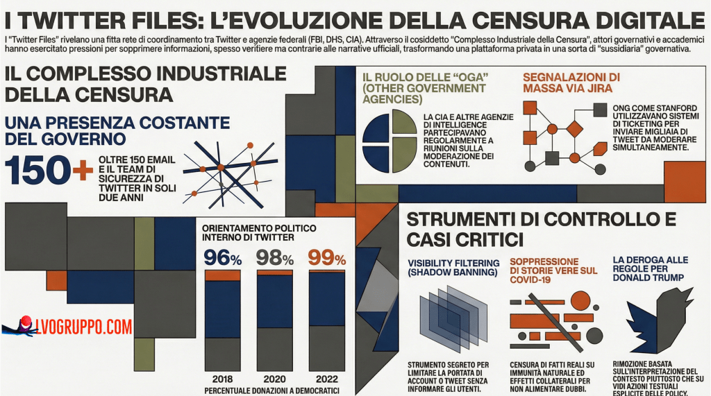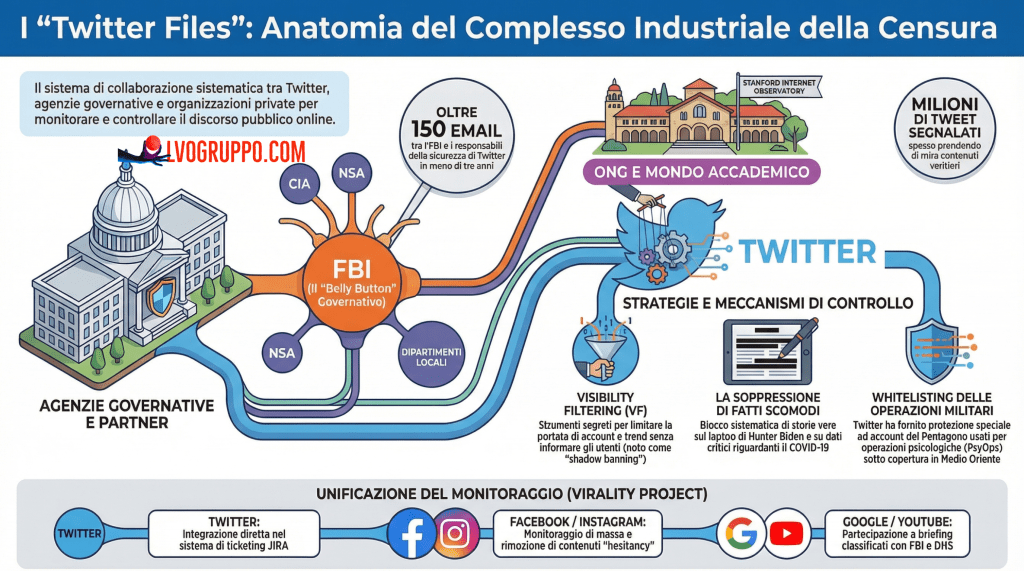 Fonti: Twitter Files, documenti interni rilasciati attraverso the-twitter-files.com e pubblicati daMatt Taibbi, Bari Weiss, Michael Shellenberger e altri giornalisti indipendenti.